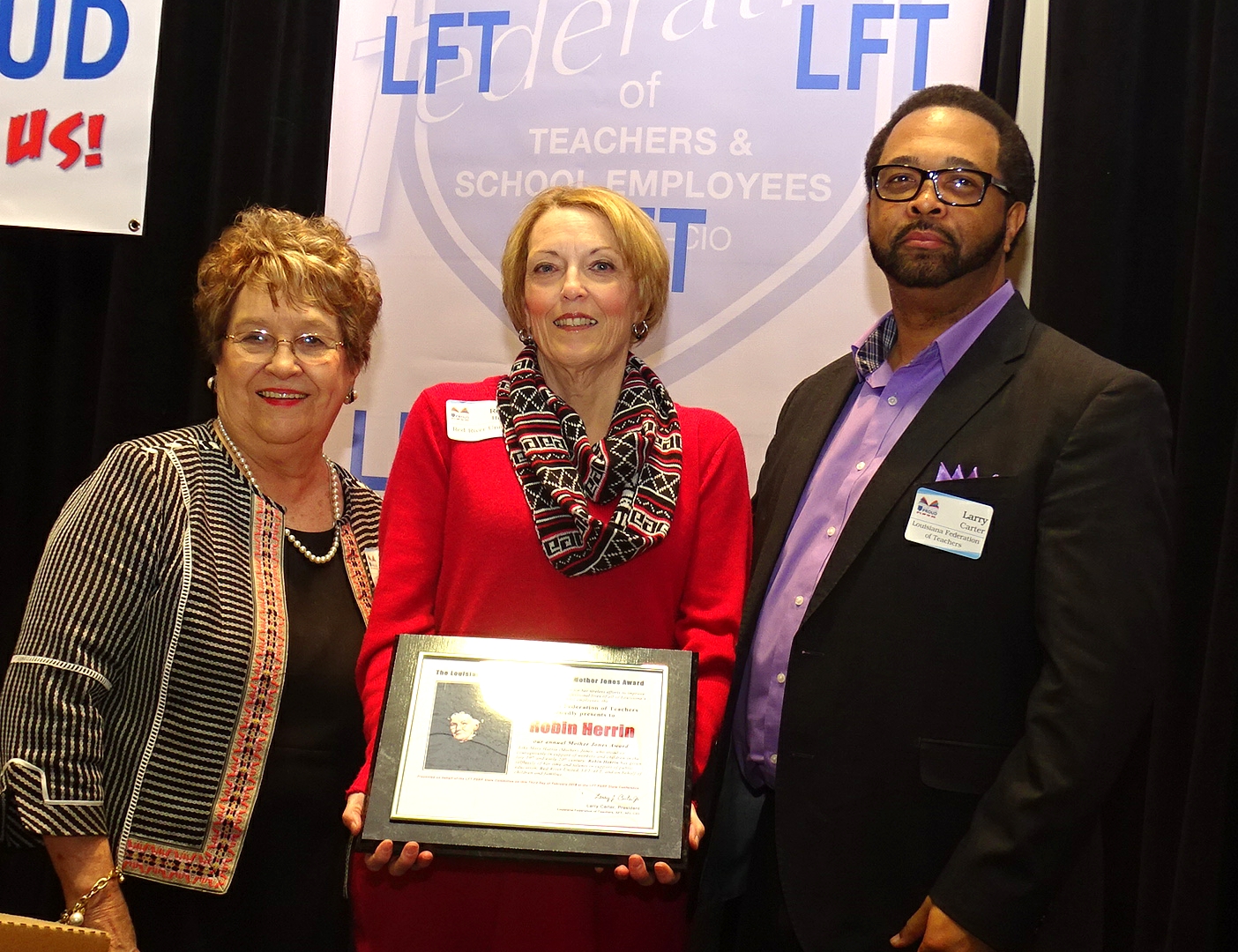 Robin Herrin, a member of the Red River United chapter of the Louisiana Federation of Teachers, was announced as the recipient of the LFT’s Mother Jones Award at the LFT's annual Paraprofessional and School Related Personnel Conference, held February 3, 2018 at the Baton Rouge Crowne Plaza Hotel.